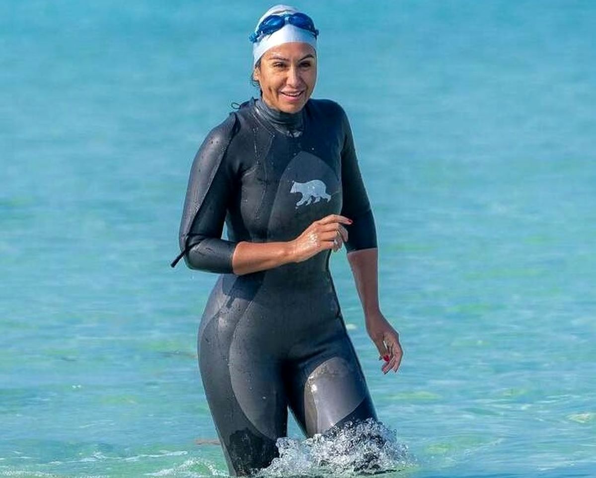 مریم بن لادن، شناگر آبهای آزاد مسیر ۳۰ کیلومتری از بندر الخبر عربستان سعودی تا بندر سلمان بحرین را در خلیج فارس شنا کر…